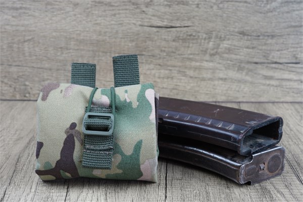 - Горловина подсумка затягивается кулиской, создавая доп.перегородку, чтобы избежать утери магазинов. В то время когда подсумок не используется, его можно свернуть для компактности.